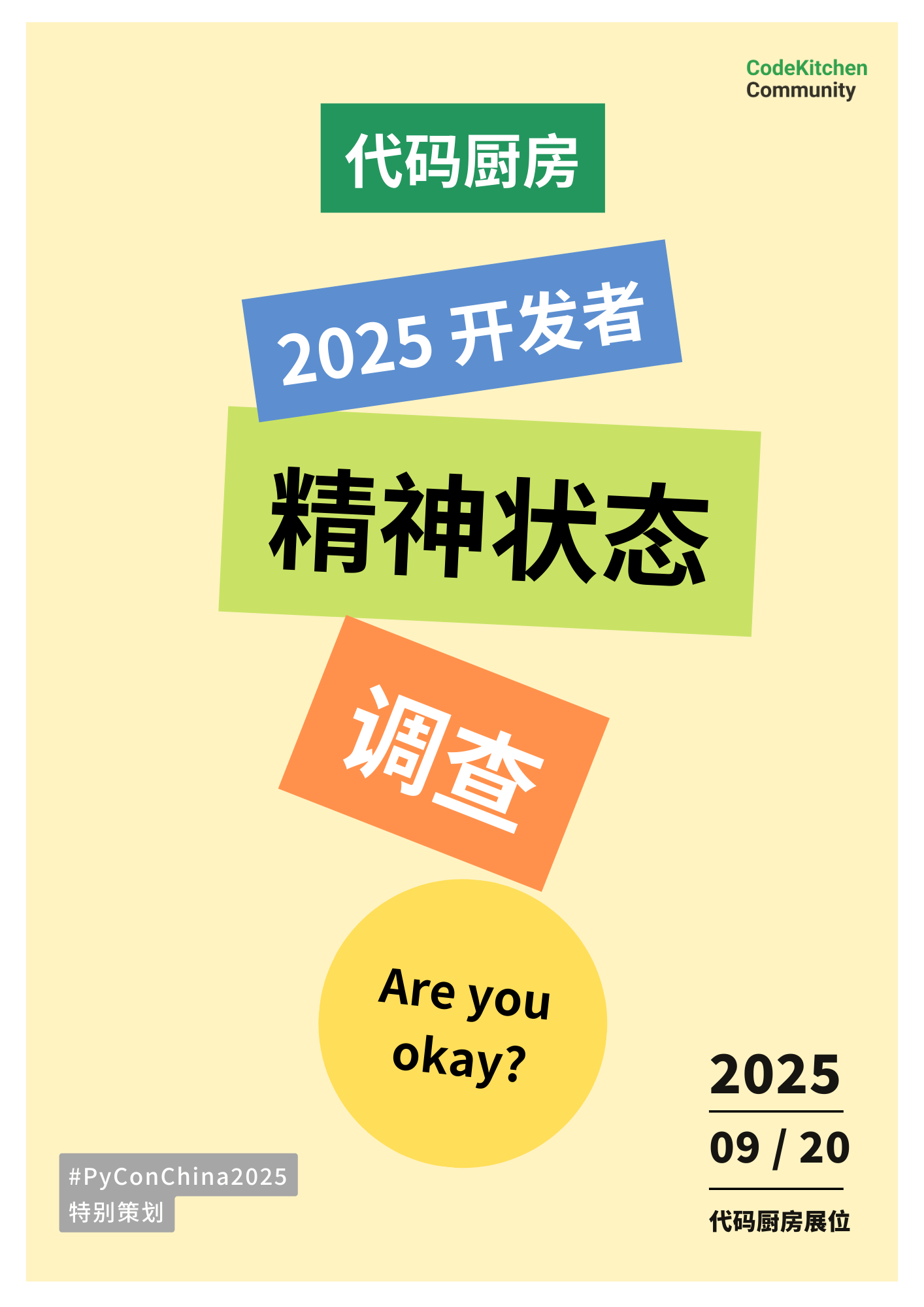 PyCon China 2025 来了!和去年一样,PyCon China 2025 会继续在上海举办,时间定在了九月 20 日。作为 PyCon China 的特别支持社区,代码厨房去年在 PyCon China 举办了 Python 专场开源松,同时在社区集市办了「Python 八股文面试挑战」活动,详见去年的活动回顾文章。今年代码厨房会继续在 PyCon 举办 Python 专场开源松,欢迎一起来写代码,交朋友。