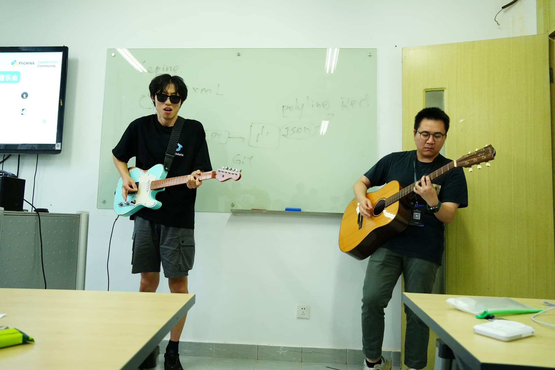 按照惯例,这次开源松依然以代码厨房乐队演出结尾。演出由周煦林 @voidZXL 和卢书洋 @ZinkLu 带来: